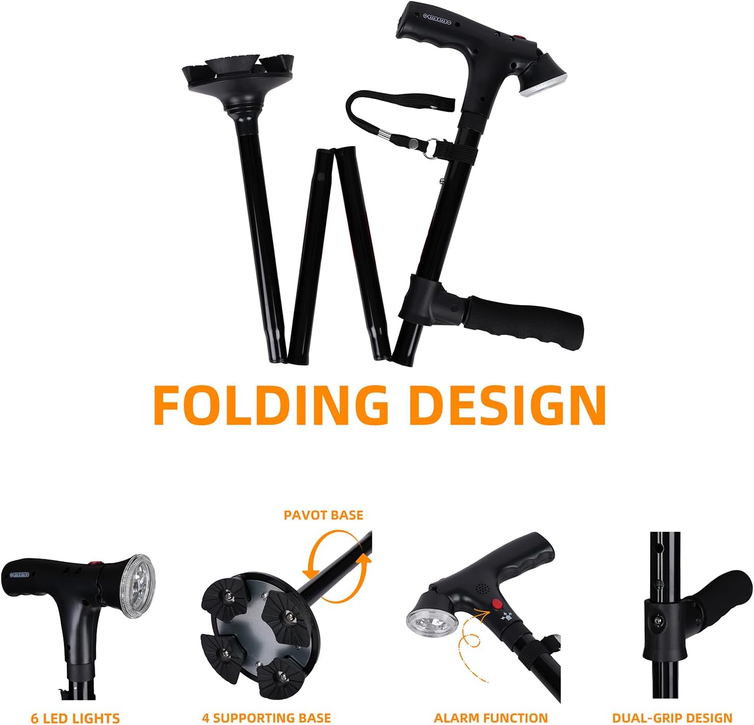 Lightweight Portable Adjustable Folding Walking Cane with LED Light